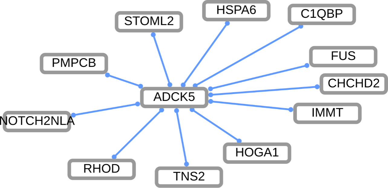 The expression of kinases varies widely across the human tissues assayed by the GTEx project and the Human Proteome Map. To gain a better understanding of the kinase tissue distribution, we've created an application that describes and summarizes the expression of each dark kinase in the context of the rest of the kinome. This interactive window onto the full applications shows the data associated with ADCK5. The graph summarizes the expression of the kinase across all the organ systems.
