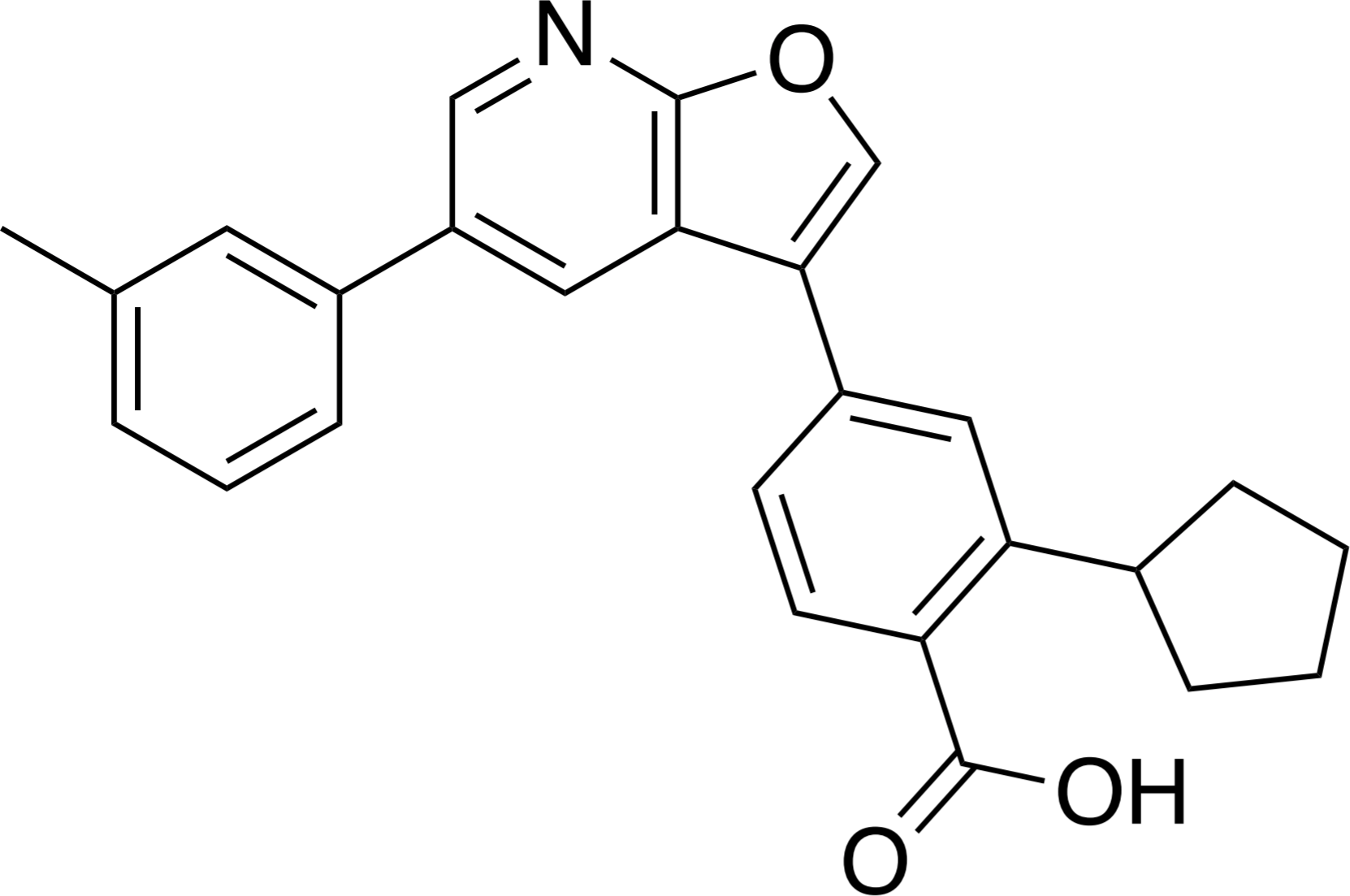 Chemical Name: 2-cyclopentyl-4-(5-(m-tolyl)furo[2,3-b]pyridin-3-yl)benzoic acid