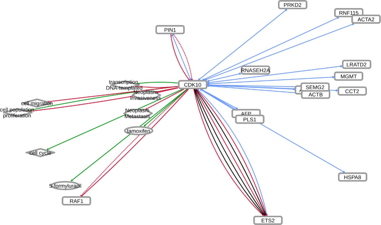 The Reactome Knowledgebase of Human Biological Pathways and Processes is a curated and peer-reviewed knowledgebase available online as an open access resource that can be freely used and distributed by all members of the biological research community. This view of the reactome database is focused on CDK10 and displays the pathways associated with CDK10.