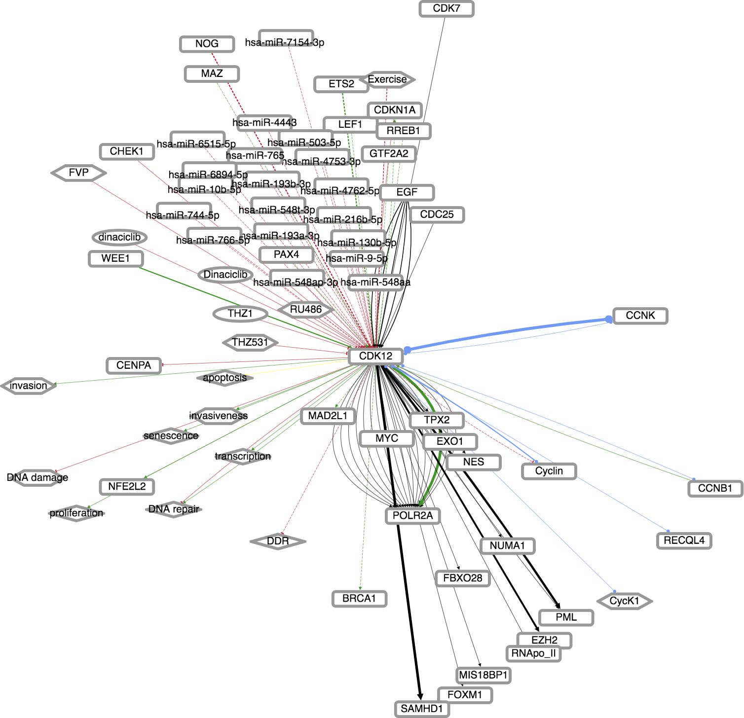 The Reactome Knowledgebase of Human Biological Pathways and Processes is a curated and peer-reviewed knowledgebase available online as an open access resource that can be freely used and distributed by all members of the biological research community. This view of the reactome database is focused on CDK12 and displays the pathways associated with CDK12.