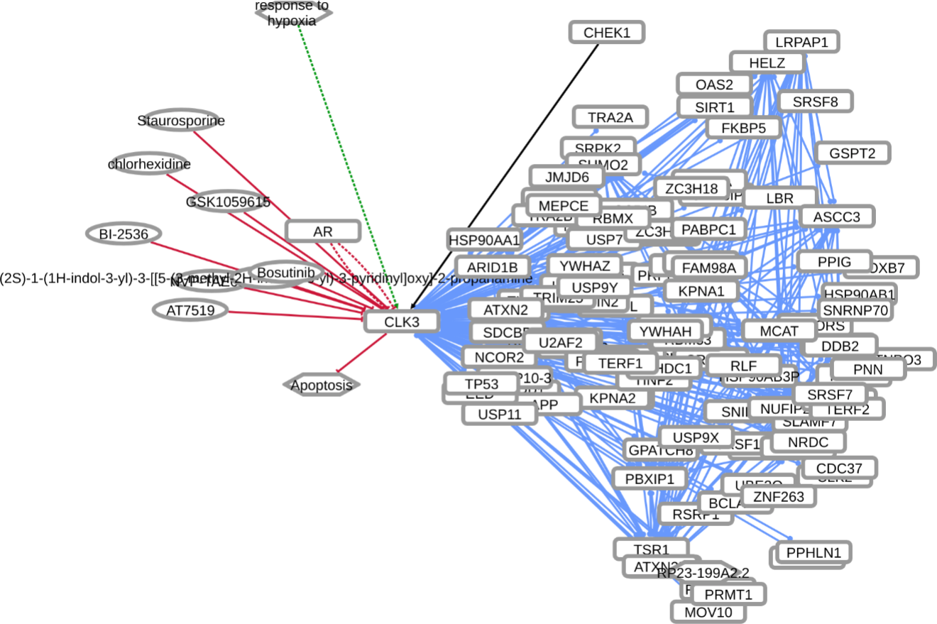 The Reactome Knowledgebase of Human Biological Pathways and Processes is a curated and peer-reviewed knowledgebase available online as an open access resource that can be freely used and distributed by all members of the biological research community. This view of the reactome database is focused on CLK3 and displays the pathways associated with CLK3.
