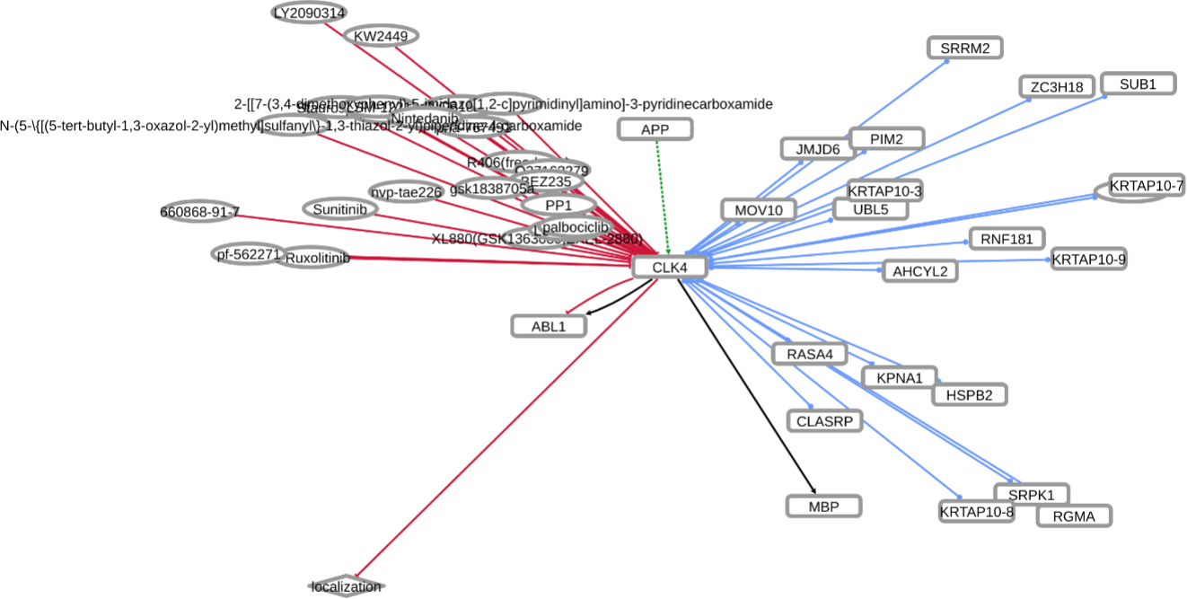 The Reactome Knowledgebase of Human Biological Pathways and Processes is a curated and peer-reviewed knowledgebase available online as an open access resource that can be freely used and distributed by all members of the biological research community. This view of the reactome database is focused on CLK4 and displays the pathways associated with CLK4.
