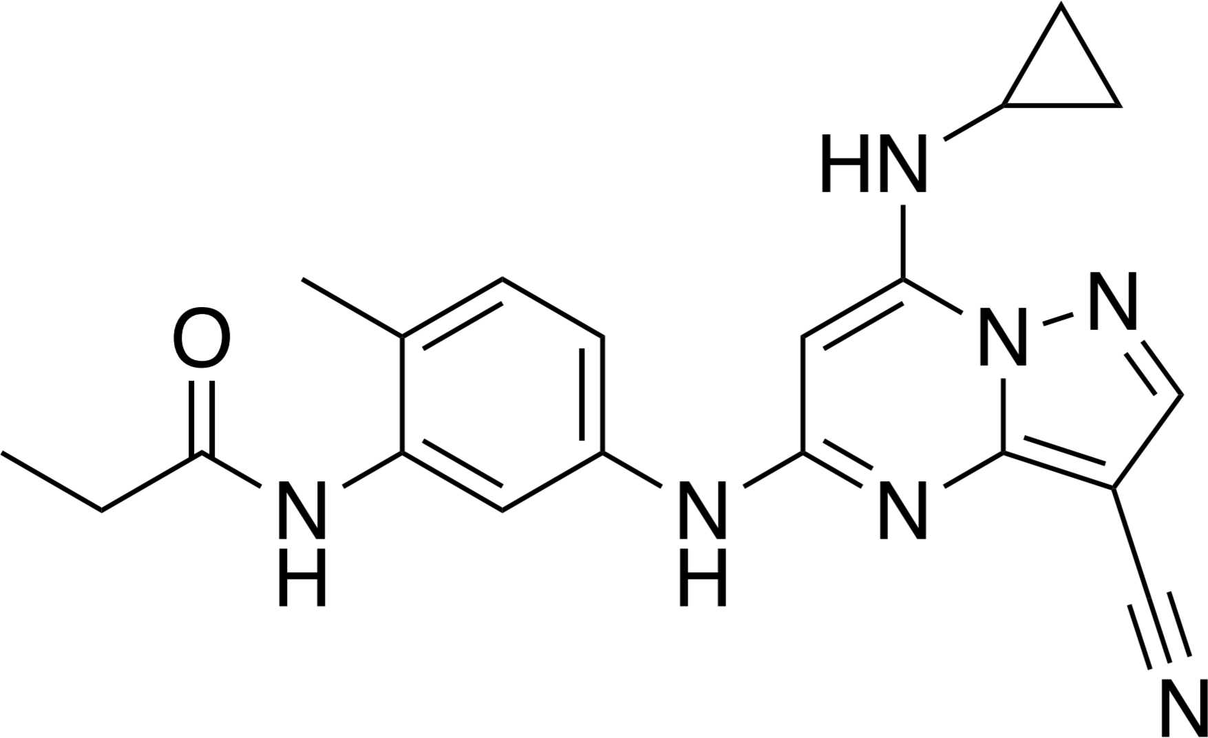 Chemical Name: N-(5-((3-cyano-7-(cyclopropylamino)pyrazolo[1,5-a]pyrimidin-5-yl)amino)-2-methylphenyl)propionamide