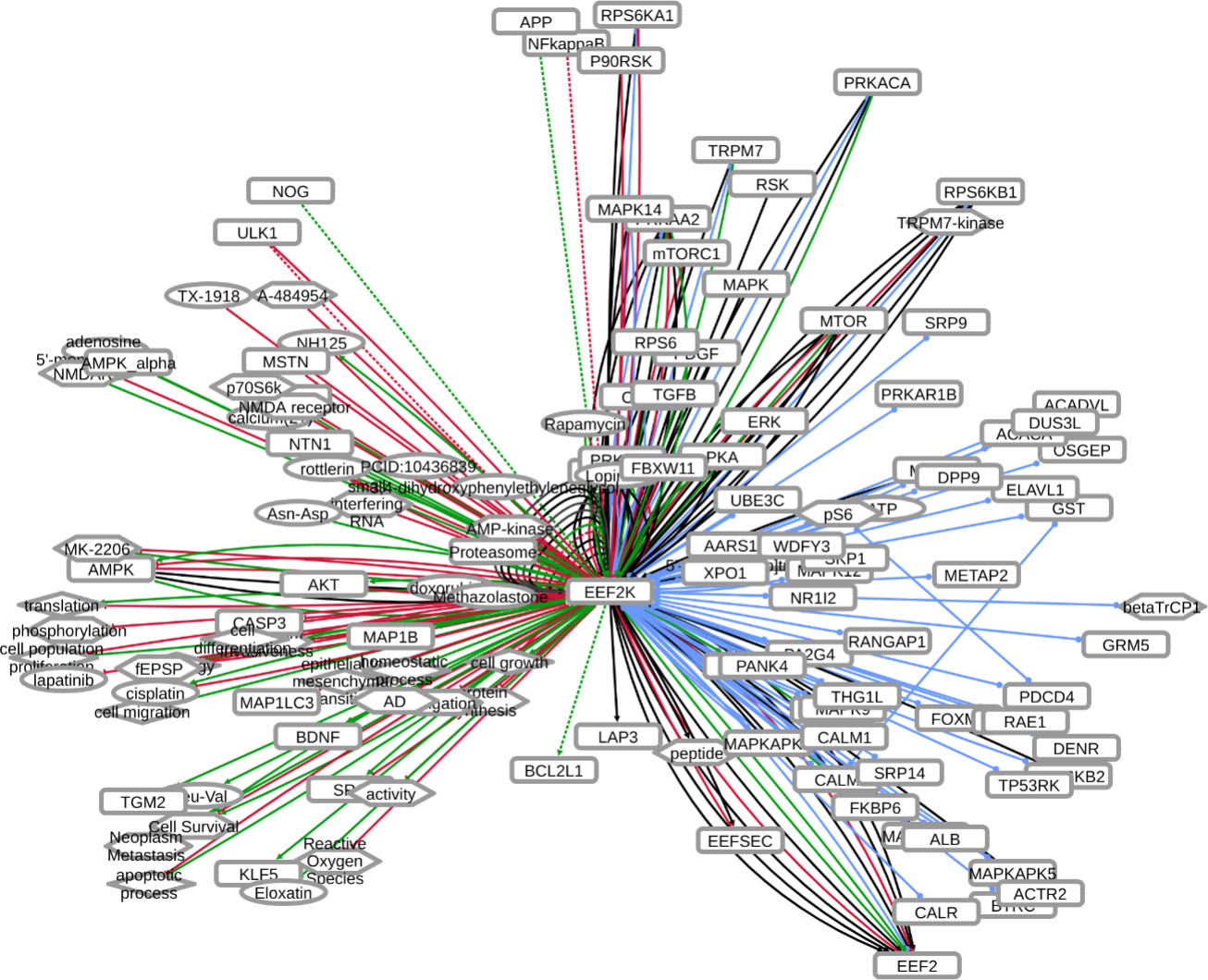The Reactome Knowledgebase of Human Biological Pathways and Processes is a curated and peer-reviewed knowledgebase available online as an open access resource that can be freely used and distributed by all members of the biological research community. This view of the reactome database is focused on EEF2K and displays the pathways associated with EEF2K.