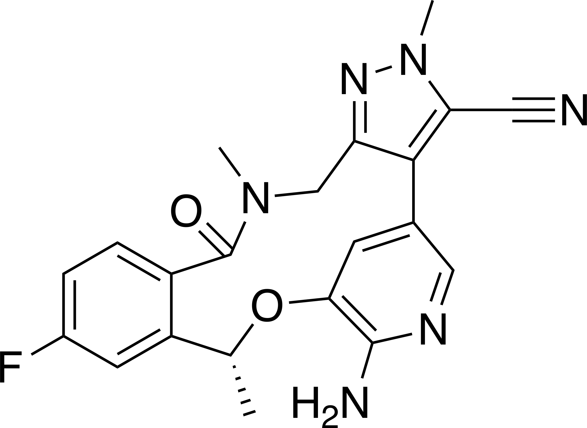 Chemical Name: (R)-26-amino-55-fluoro-11,4,7-trimethyl-6-oxo-11H-3-oxa-7-aza-2(3,5)-pyridina-1(4,3)-pyrazola-5(1,2)-benzenacyclooctaphane-15-carbonitrile