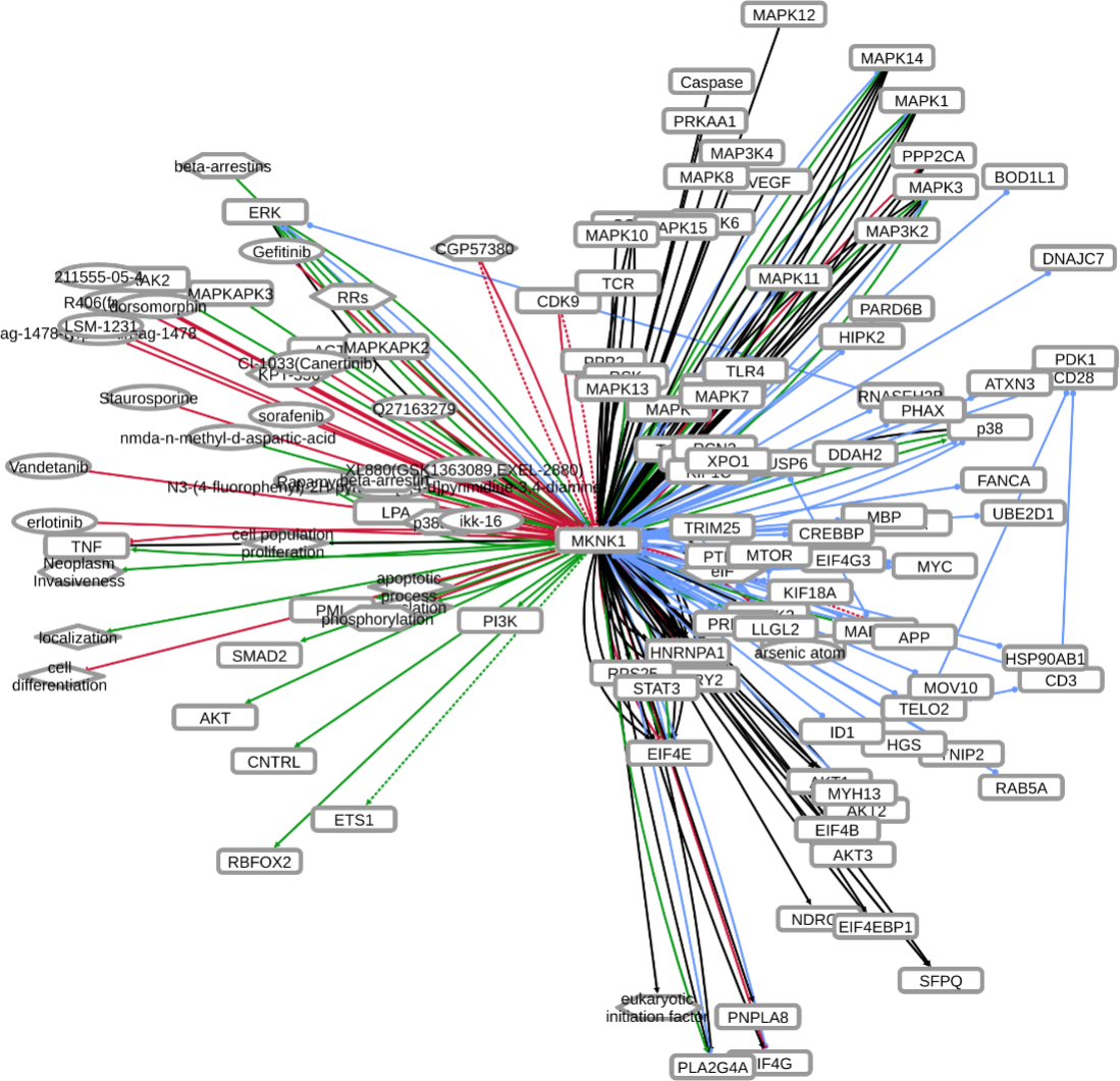 The Reactome Knowledgebase of Human Biological Pathways and Processes is a curated and peer-reviewed knowledgebase available online as an open access resource that can be freely used and distributed by all members of the biological research community. This view of the reactome database is focused on MKNK1 and displays the pathways associated with MKNK1.