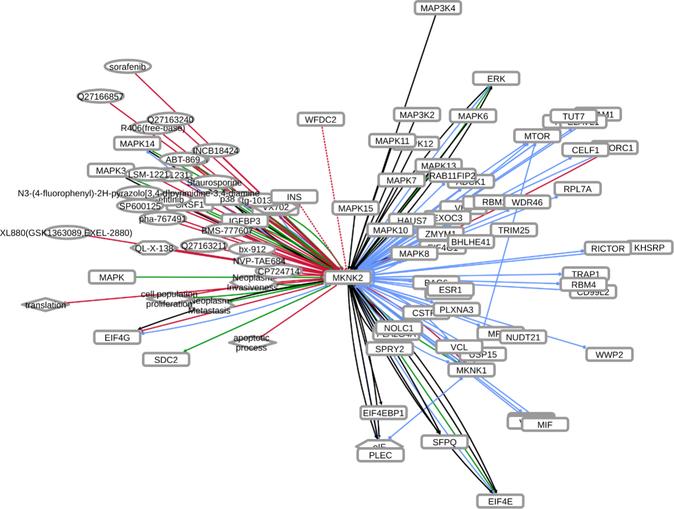 The Reactome Knowledgebase of Human Biological Pathways and Processes is a curated and peer-reviewed knowledgebase available online as an open access resource that can be freely used and distributed by all members of the biological research community. This view of the reactome database is focused on MKNK2 and displays the pathways associated with MKNK2.