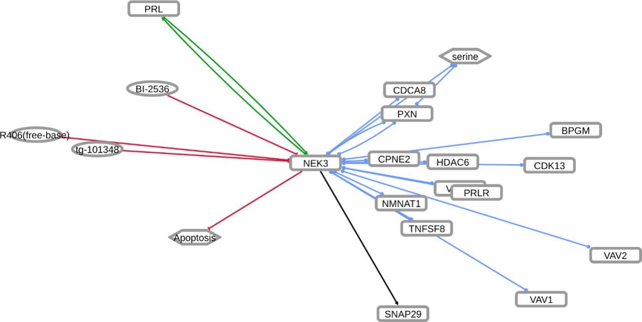 The Reactome Knowledgebase of Human Biological Pathways and Processes is a curated and peer-reviewed knowledgebase available online as an open access resource that can be freely used and distributed by all members of the biological research community. This view of the reactome database is focused on NEK3 and displays the pathways associated with NEK3.