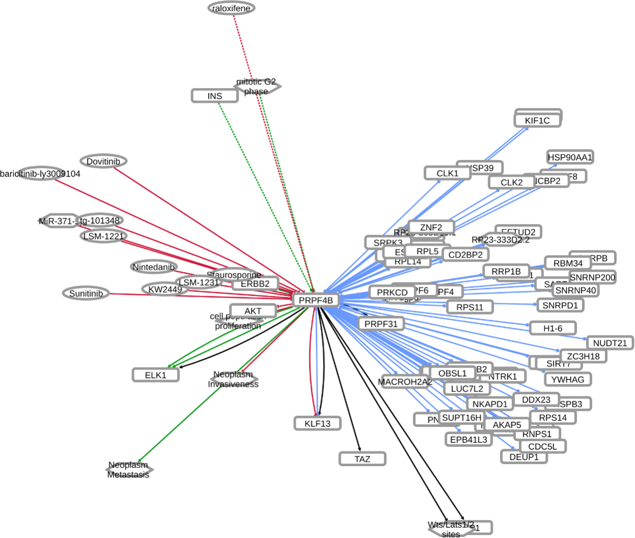 The Reactome Knowledgebase of Human Biological Pathways and Processes is a curated and peer-reviewed knowledgebase available online as an open access resource that can be freely used and distributed by all members of the biological research community. This view of the reactome database is focused on PRPF4B and displays the pathways associated with PRPF4B.